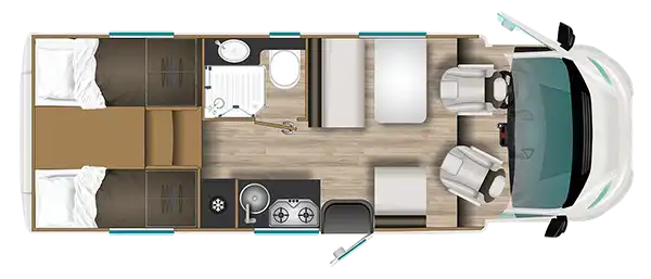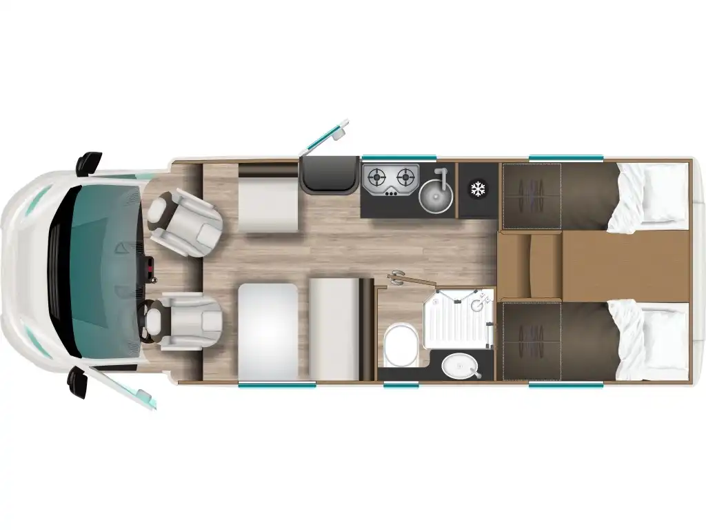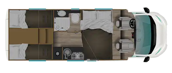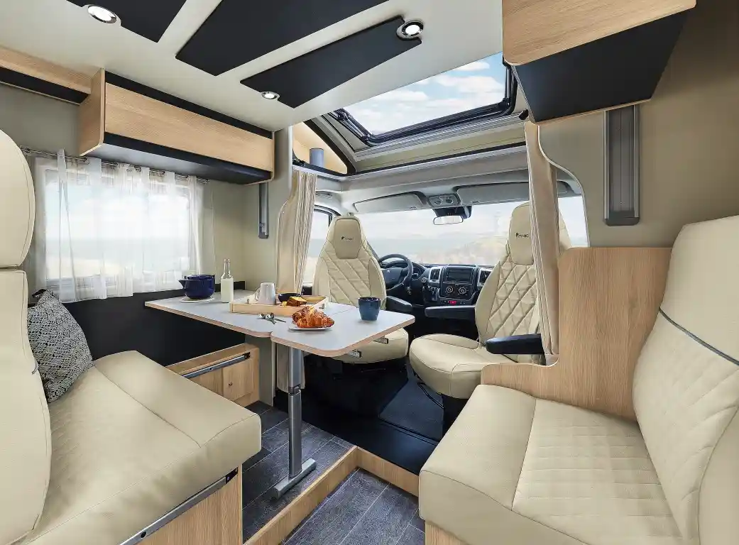 - Fahrerhaussitze mit gleichem Stoff wie im Wohnraum