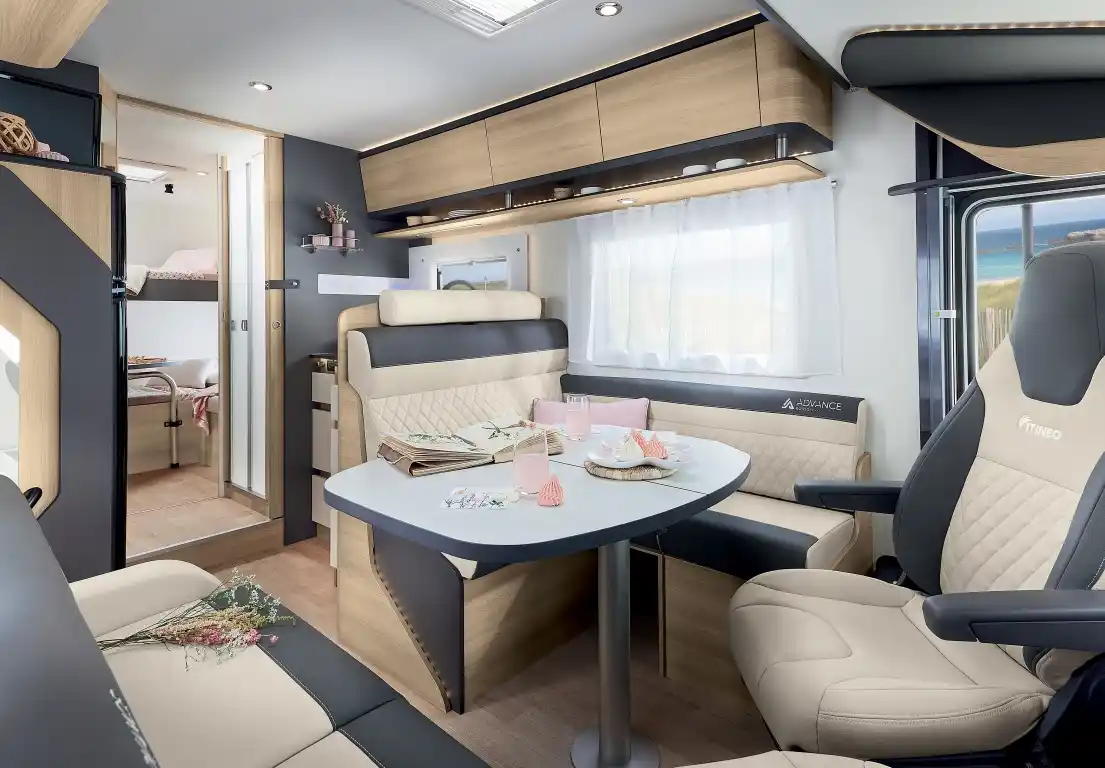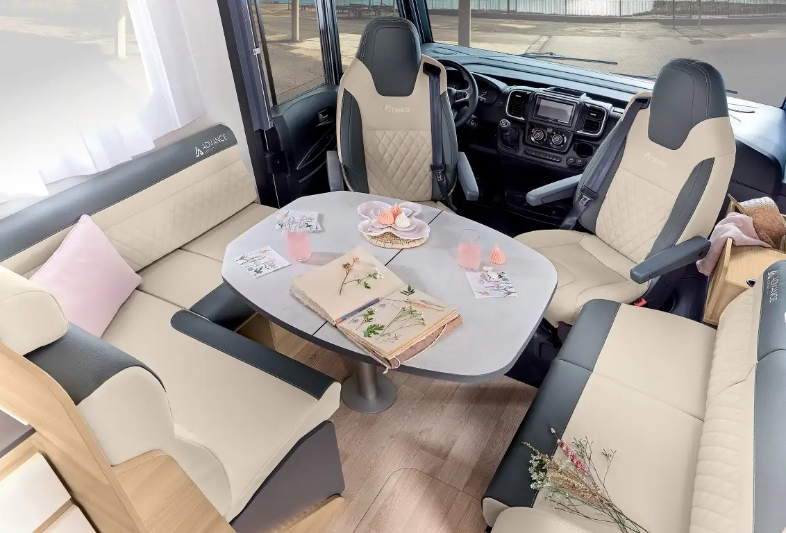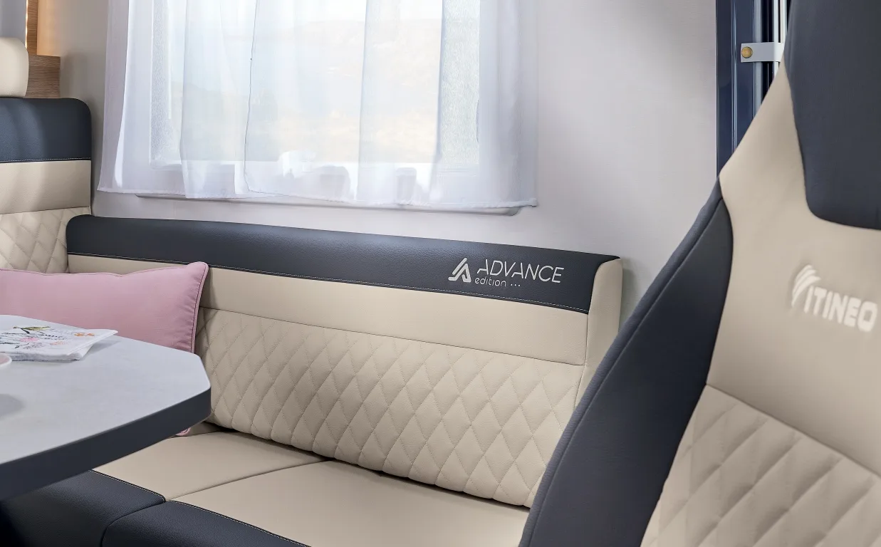 - Fahrerhaussitze mit gleichem Stoff wie im Wohnraum
